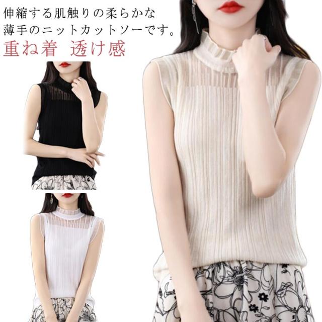 ノースリーブ ハイネック ニット トップス ベスト シアートップス タンクトップ 透け感 インナー レイヤード 春夏 秋 春秋 重ね着 ニット 薄手 送料無料 シースルー 通勤 OL 女性