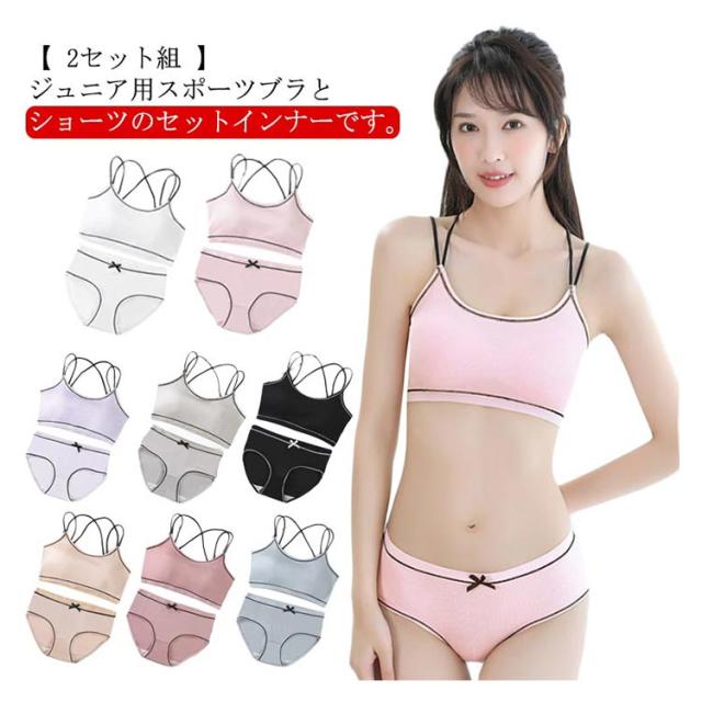女の子 ファーストブラ ジュニア向け スポーツブラ ブラ ショーツ セット 上下セット カップ付き 子供用 インナー 肌着 綿 学生 中学生 高校生 アンダーウェア 下着 送料無料
