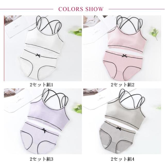 | 【 2セット組 】 ジュニア用スポーツブラとショーツのセットインナーです。 綿(コットン)素材で気持ちいい肌触り。 体にピッタリフィットして揺れないのでダンス衣装のインナーとしても大活躍! シンプルなデザインで使いやすく、デイリー使いにぴったりです。 | |