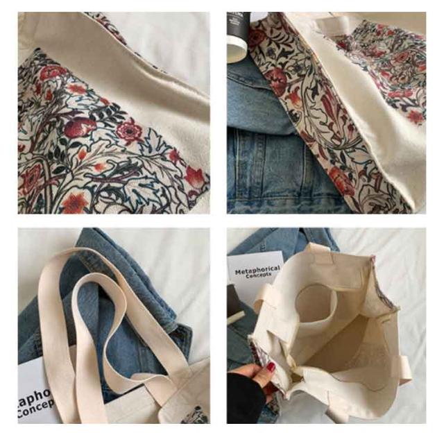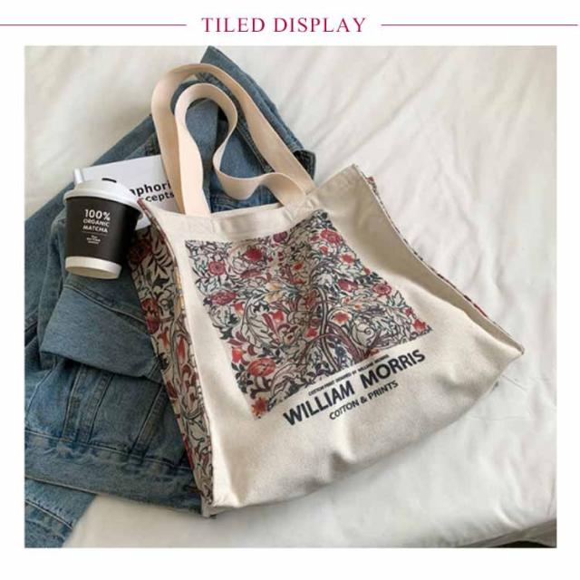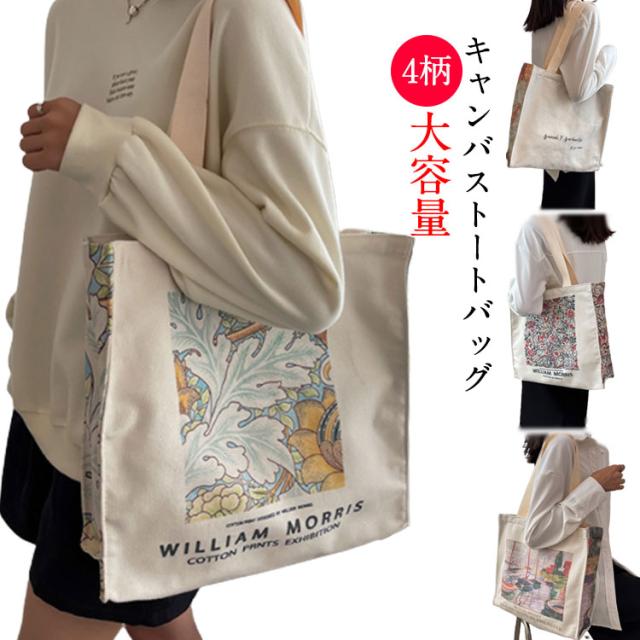 トートバッグ レディース キャンバス 花柄 大人女子 弁当 カジュアル シンプル 多収納 マザーズバッグ トート 大容量 帆布バッグ 森ガール かばん エコバッグ ショッピングバッグ