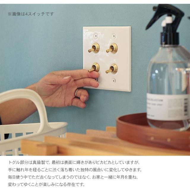 セラミックプレートと、真鍮のトグルがおしゃれなスイッチ