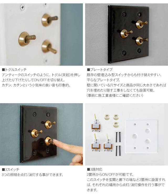 トグルスイッチ セラミックプレート (3スイッチ) HS3109 照明 スイッチ 照明器具 壁スイッチ 北欧 インテリア おしゃれ 韓国 インテリア ライト ダイニング リビング 寝室 玄関 ナチュラル 和モダン インダストリアル レトロ