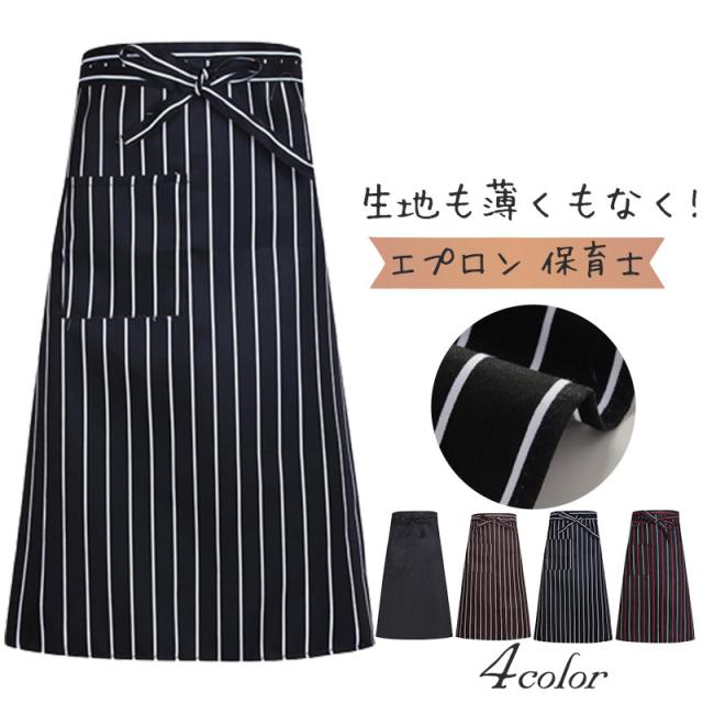 エプロン 作業用 メンズ レディース 制服 割烹着 ハーフ ロング丈 ボーダー柄 チェック柄 前掛け カフェ レストラン 居酒屋