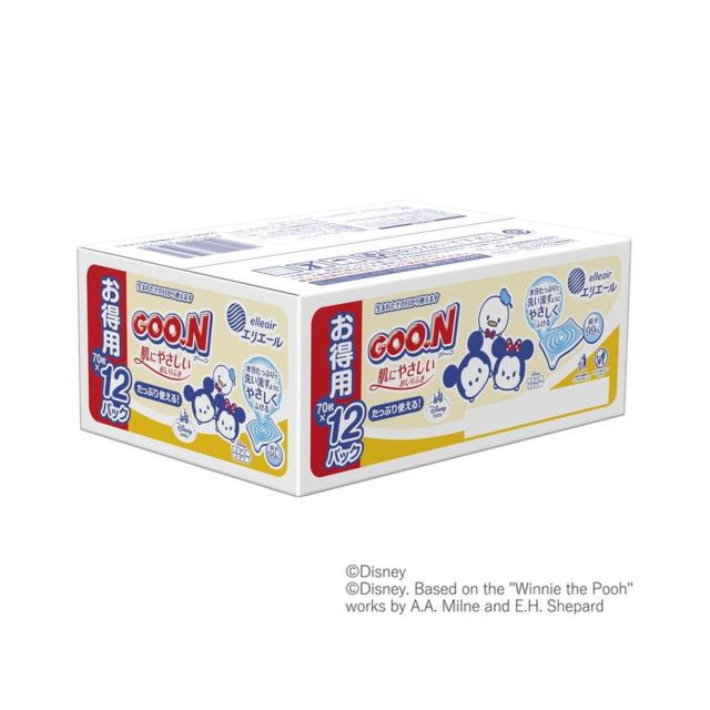 グーン 肌にやさしいおしりふき 70枚×12P(大王製紙 ノンアルコール 敏感肌 純水99%)