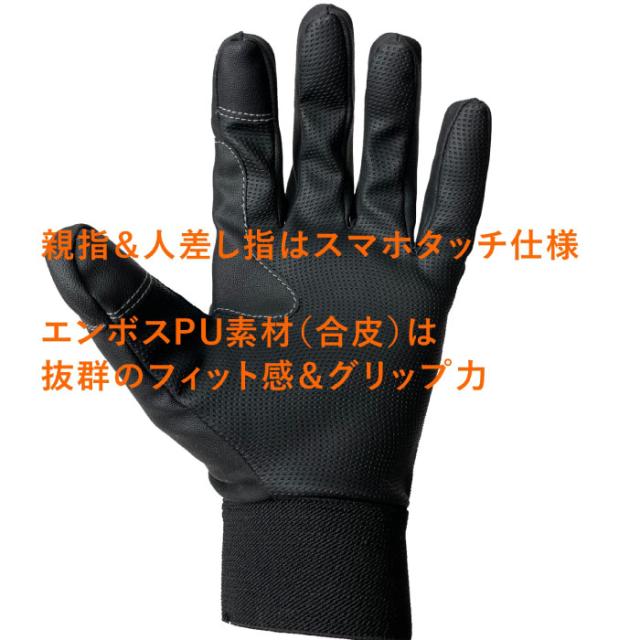 ・手のひら全体のエンボス加工PU素材は抜群のフィット感&グリップ力