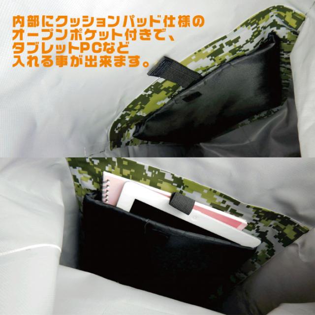 内部にクッションパッド仕様のオープンポケット付きで、タブレットPCなどを入れる事が出来ます。