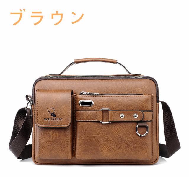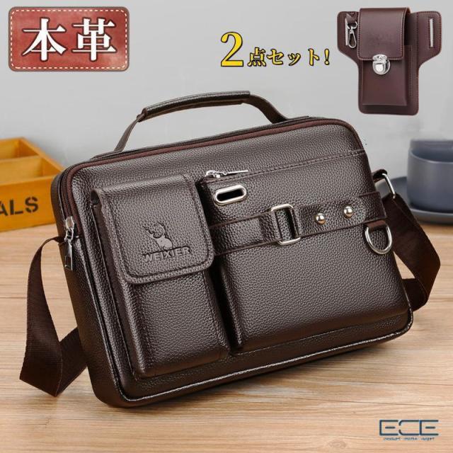 【ウエストポーチおまけ】ショルダーバッグ メンズ イタリアンレザー 本革 肩掛け 斜め掛け 大人 軽量 通勤 ブランド 大容量 多収納