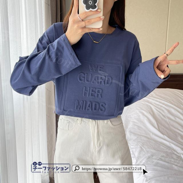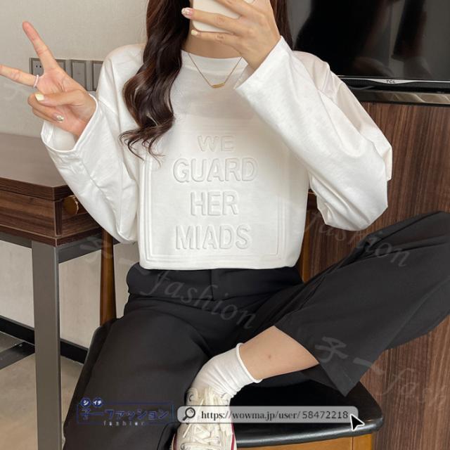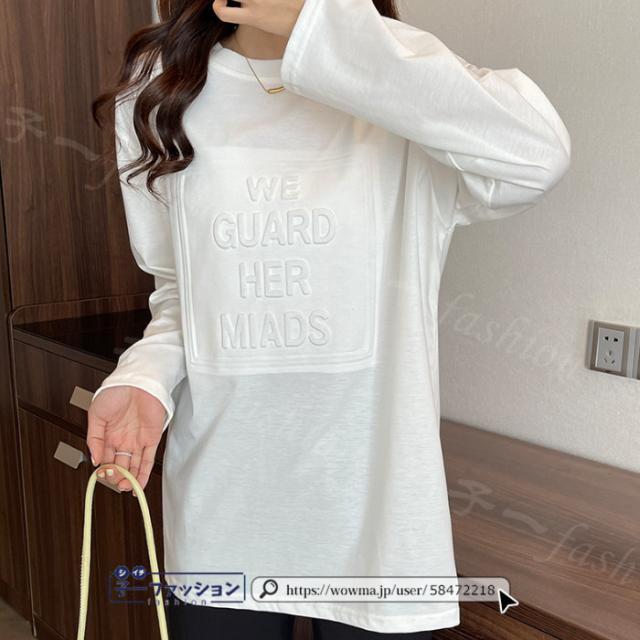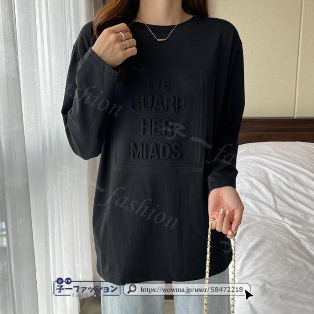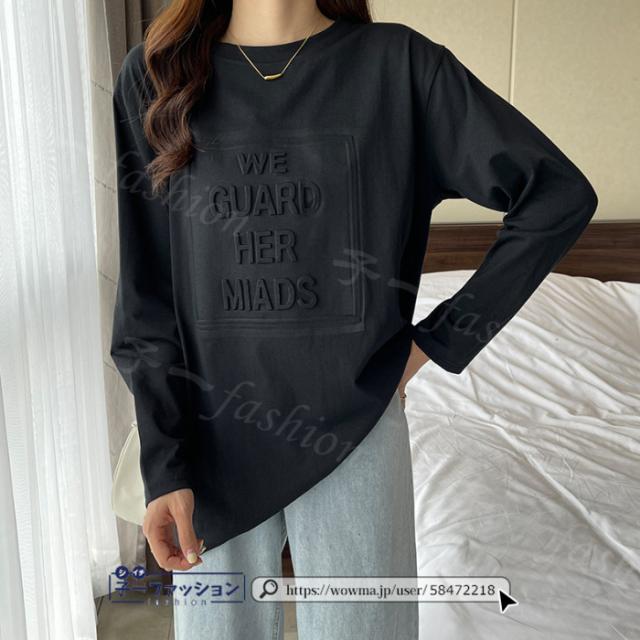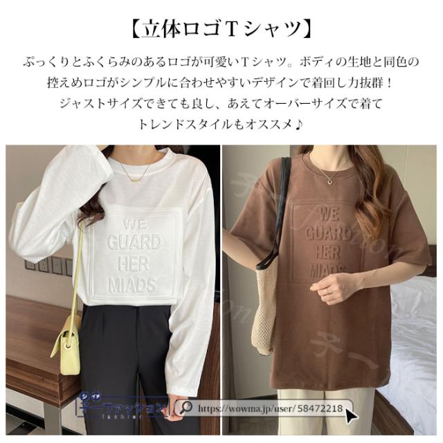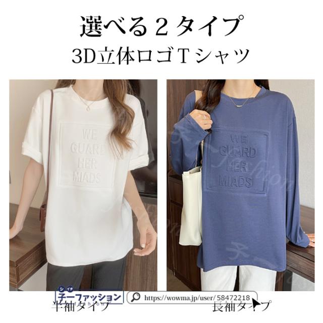 <1点2,090円!クーポン利用で>tシャツ 半袖 長袖 部分即納 冬新作 新作 2タイプ レディース トップス ゆったり ロゴT ロゴTシャツ 立体ロゴTシャツ 大きいサイズ tシャツ・カットソー 英字 立体 3D ロゴ 無地 女性 着回し 洗える【 3DロゴTシャツ 】秋服