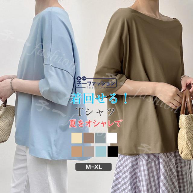 tシャツ レディース 五分袖 春新作 送料無料 トップス Tシャツ 夏服 シンプル カジュアル ゆったり ゆるT 無地 女性 春 夏 着回し カットソー 洗える 体型カバー 着痩せ 涼しい UVカット ギフト 秋服 秋冬 バレンタイン