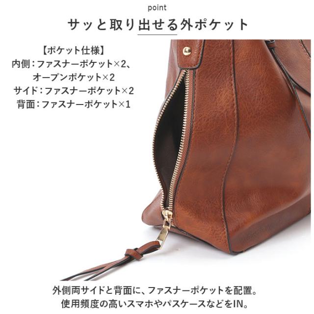 | 商品説明 | ・オン・オフ問わず活躍!シンプルなトートバッグが新登場。 【大人な仕上がり】 ・表面に手触り滑らかなPUレザー素材を使用。ゴールド金具やパイピングデザインが程よいアクセントになり、ビジネスシーンやキレイめコーデにもマッチ! 【持ち方を選べる2WAYタイプ】 ・ワンショルダーのトートバッグとしてはもちろん、長さ調節可能なショルダーベルトを取り付けて、斜め掛けもOK。 【天ファスナー開口】 ・開口部は天ファスナー式。中身がこぼれ落ちにくく、プライバシーを確保。 【A4サイズ対応】 ・内側はA4サイズのファイルがすっぽり。500mlペットボトルや、お出かけに必要な小物類もひとまとめ◎ 【便利な間仕切りや内ポケット付き】 ・4つの内ポケット付きで、小物が迷子になりにくい!中央のファスナーポケットが仕切りの役割を果たし、すっきり整理整頓♪ 【サッと取り出せる外ポケット】 ・外側両サイドと背面に、ファスナーポケットを配置。使用頻度の高いスマホやパスケースなどをIN。 【手軽に持ち出せる!】 ・ボディラインに心地よく馴染む、くたっとしたフォルムもポイント。 【ポケット仕様】 ・内側:ファスナーポケット×2、オープンポケット×2 ・サイド:ファスナーポケット×2 ・背面:ファスナーポケット×1 |