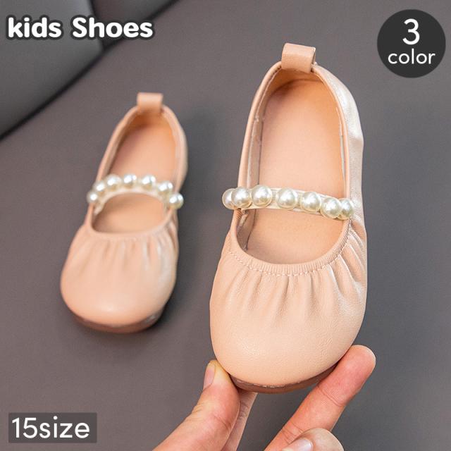 バレエシューズ パンプス 子供用 キッズ ジュニア 女の子 ワンストラップ フェイクパール フォーマル ぺたんこ靴 くつ フェイ