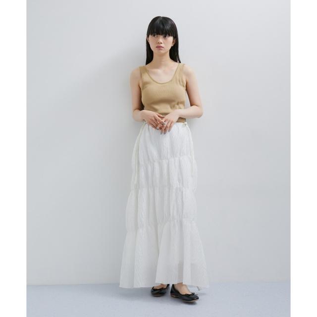 ジャケットやシアートップスのインナーとしてはもちろん、アクセサリーなどを重ね付けしながら、1枚でのヘルシーな肌見せスタイリングもぜひ。
