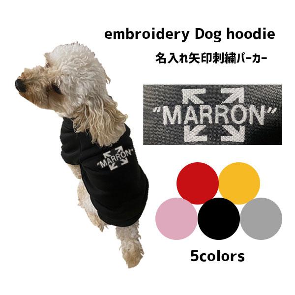犬 服 ペットウェア 矢印マーク 名入れ刺繍 パーカー 裏起毛 あったかい おしゃれ