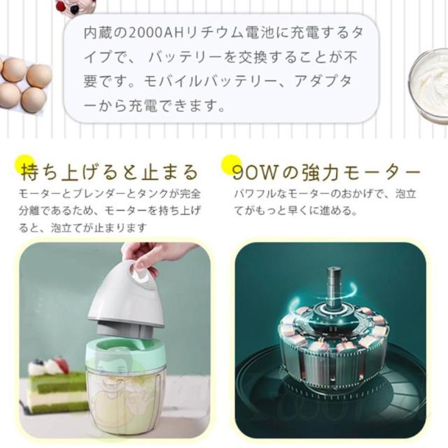 泡立て器 電動 ハンドミキサー 小型 900ml 多機能ミキサー ホイッパー ハンドミキサー 離乳食 ブレンダー お菓子作り USB充電 お手入れ キッチン用品