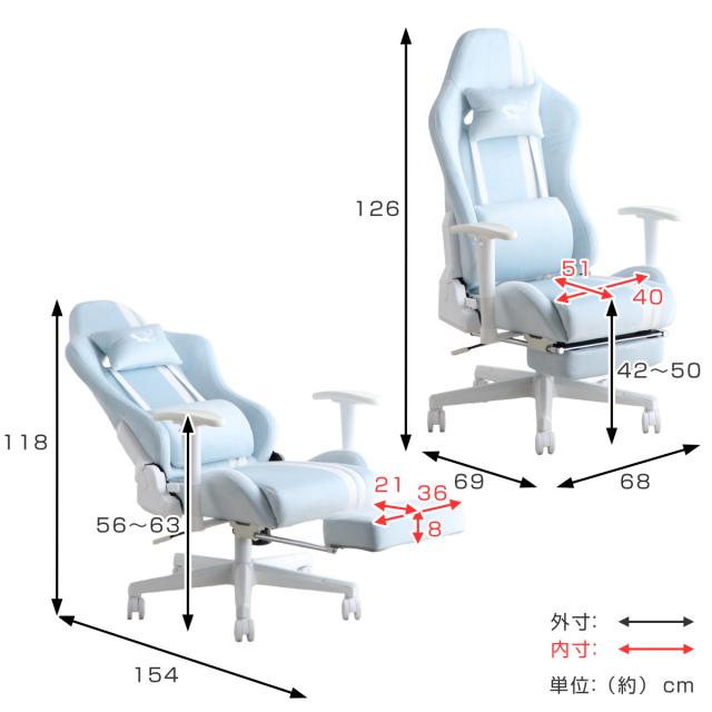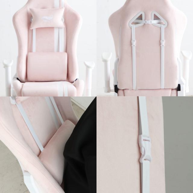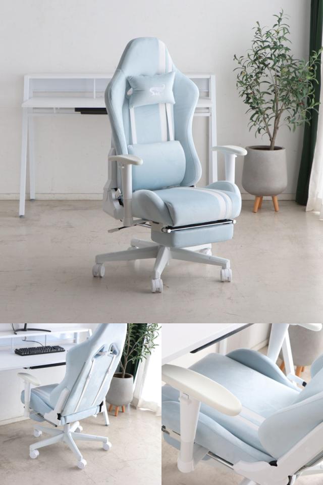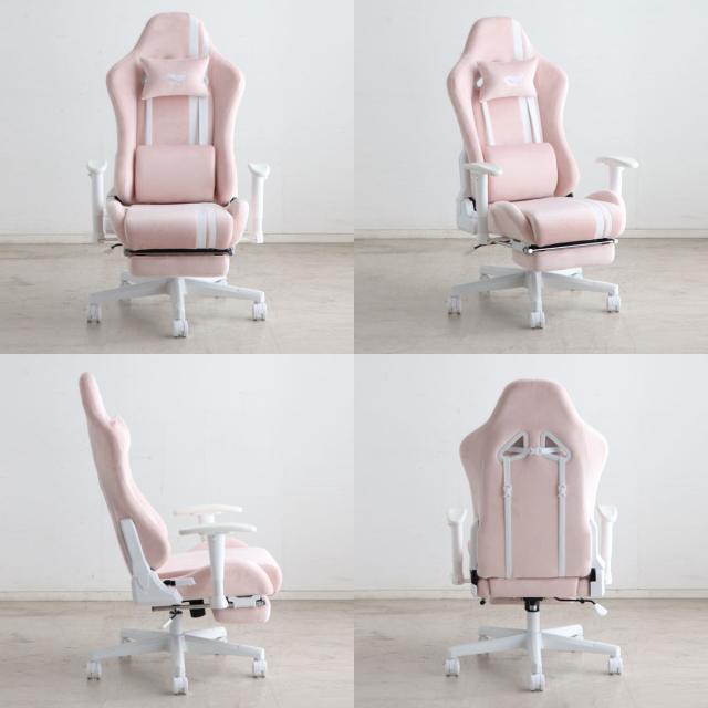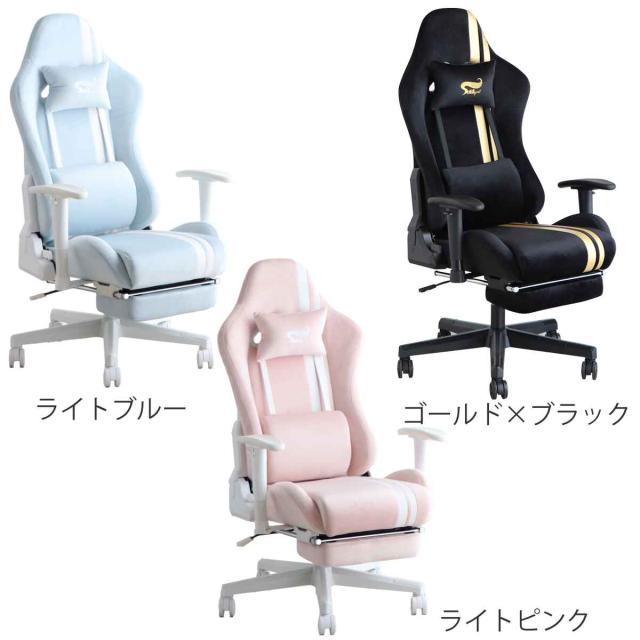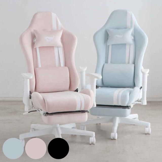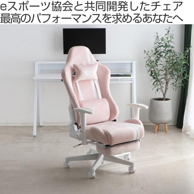 ゲーミングチェア 座面高42〜50cm フットレスト ( デスクチェア 椅子 パソコン チェア オフィスチェア ゲーム ファブリック アームレスト ランバーサポート ネックピロー かわいい おしゃれ 女子 )
