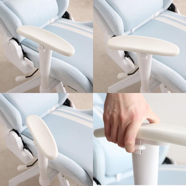 肘置きの角度も高さも調節可能