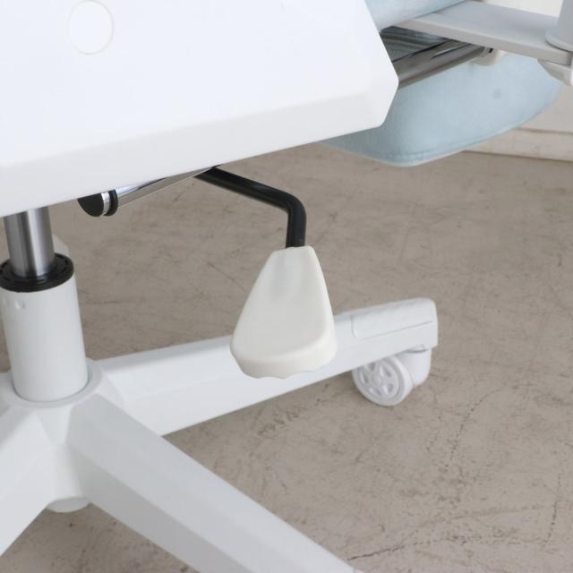 座面高さはレバーで簡単に調節できます。デスクの高さと合わせることで身体への負担も少なく疲れにくくなります。