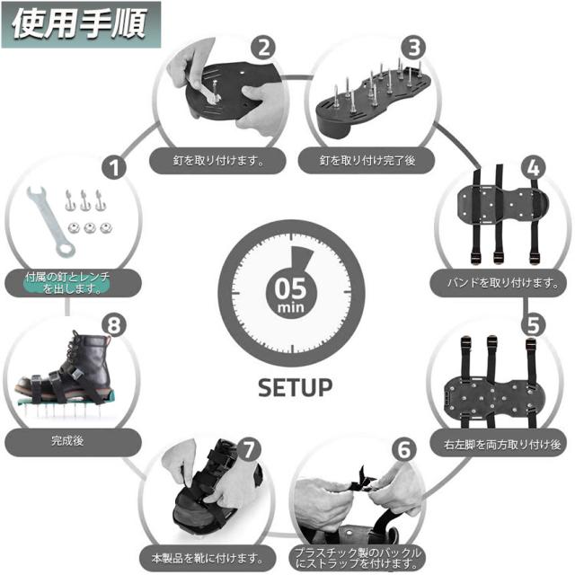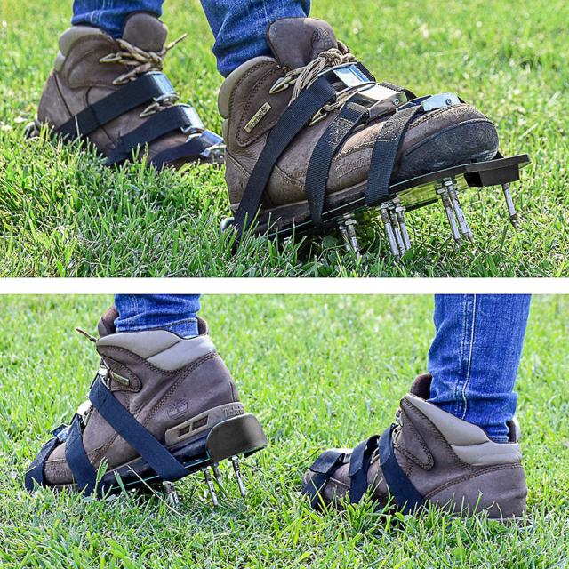 【 ガーデンスパイク】履いて歩くだけ芝生の穴あけ作業が簡単に芝生のお手入れに重要な穴あけ作業。複雑な機器や多額の費用に投資する必要はありません。ガーデンスパイク履い芝生の上を体重をかけながらゆっくり歩くだけ。足の裏のスパイクで穴あけが簡単にできます。歩くだけで穴あけ作業ができるので、とっても簡単。面倒な芝生のメンテナンスラクラクになります。