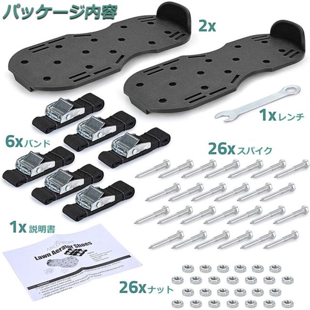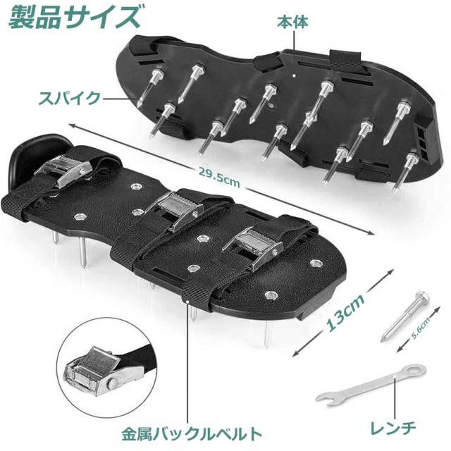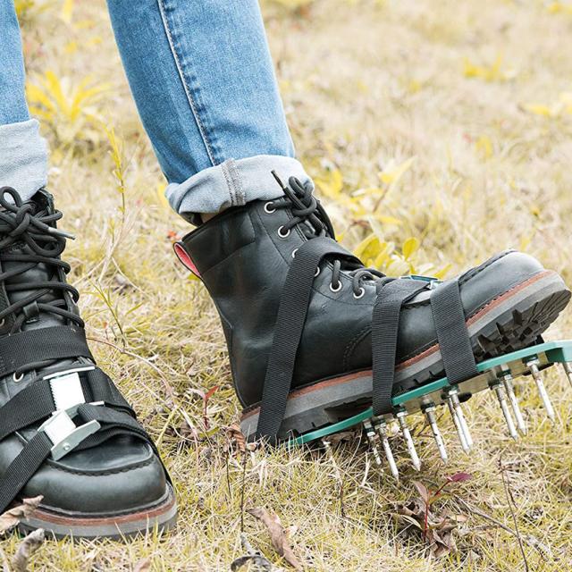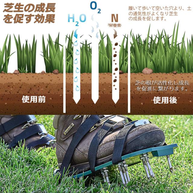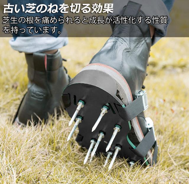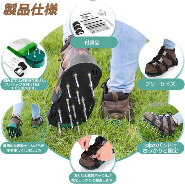 【 ガーデンスパイク】履いて歩くだけ芝生の穴あけ作業が簡単に芝生のお手入れに重要な穴あけ作業。複雑な機器や多額の費用に投資する必要はありません。ガーデンスパイク履い芝生の上を体重をかけながらゆっくり歩くだけ。足の裏のスパイクで穴あけが簡単にできます。歩くだけで穴あけ作業ができるので、とっても簡単。面倒な芝生のメンテナンスラクラクになります。【効果】土に穴をあけ空気を送り、土壌微生物を活性化 、土の軟化 、保水性や通気性の向上 ・芝生を適度に傷めて成長を活性化し、発根促進 ・古い根を切る 芝生を綺麗に保つ事ができます。