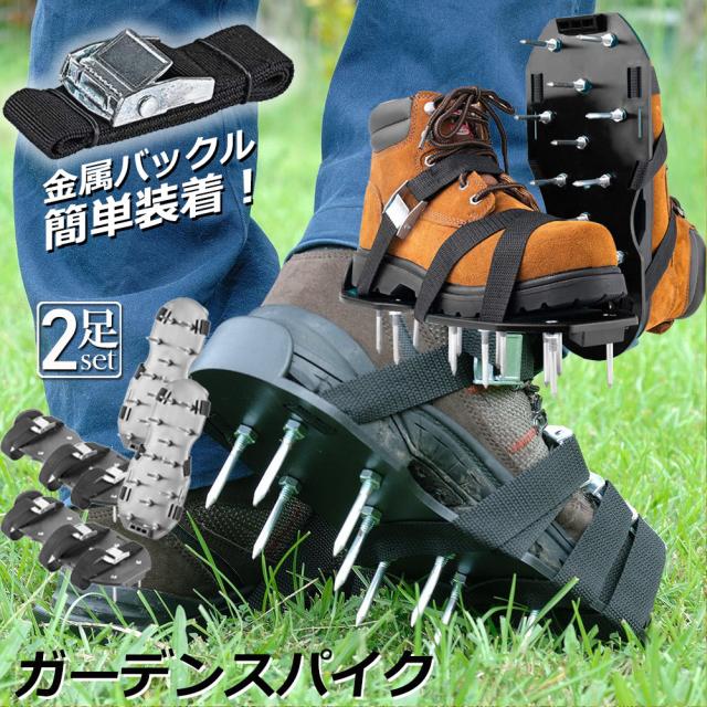 芝スパイク ガーデンスパイク 2足セット スパイクシューズ 芝生 スパイク 復活 道具 工具 穴あけ 穴開け機 エアレーション機器 穴開け機 育成 高麗芝 庭 ガーデン グッズ 病気 パンチ 芝 シバ 靴 活性化 手入れ 手軽 刃 芝生スパイク 土壌改良