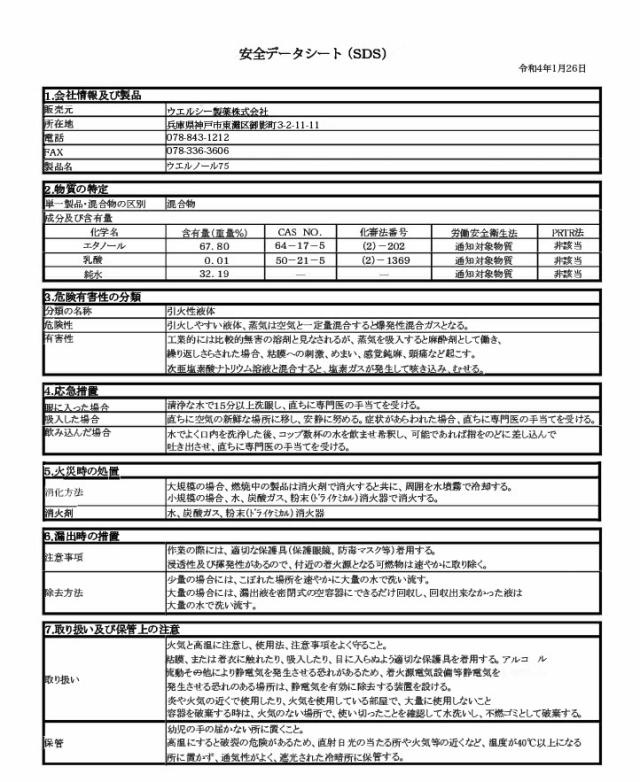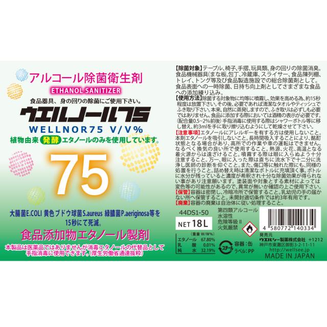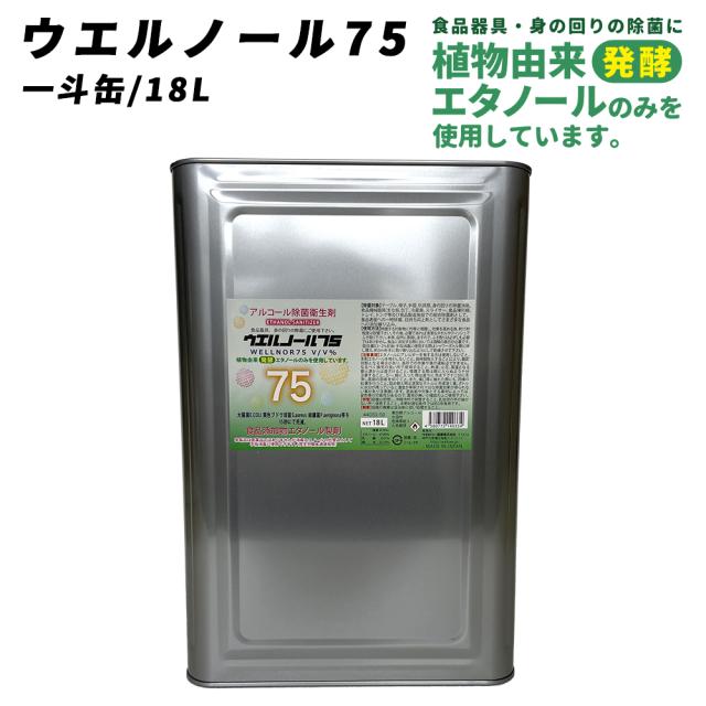 ウエルシー製薬 アルコール除菌液 ウエルノール75 18L 一斗缶 除菌 消臭剤 感染対策 消毒エタノール代替品 食品添加物エタノール製剤 ウィルス対策 業務用 アルコール消毒液 70%以上 日本製 ステイホーム 自宅待機 ウェルノール 配送先個人宅指定不可