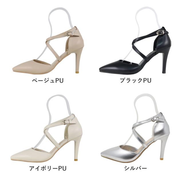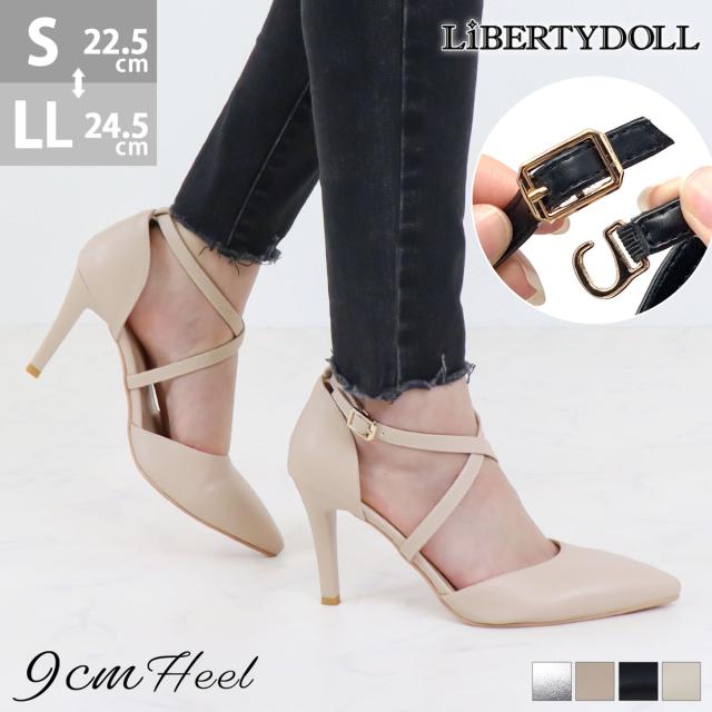 セパレートパンプス ポインテッドトゥ クロスストラップ オケージョンパンプス 美脚 9cmヒール No.1176 22.5cm-24.5cm 黒 ブラック シルバー LiBERTYDOLL リバティードール