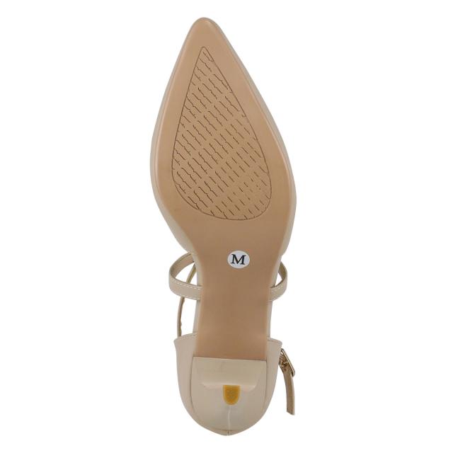 ポインテッドトゥと細いクロスストラップが、女性らしい華奢な足元を演出します。