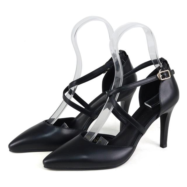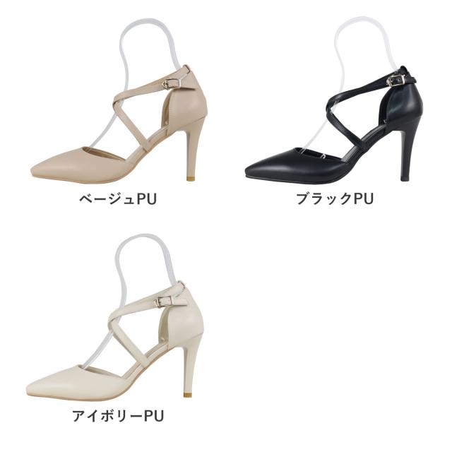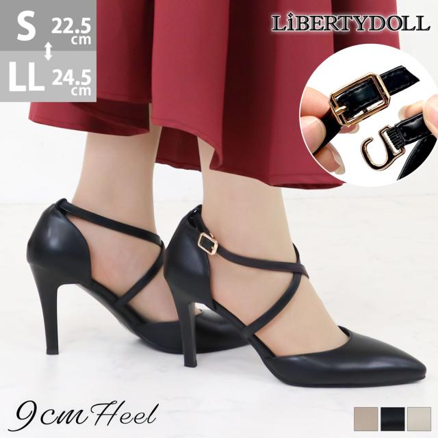セパレートパンプス ポインテッドトゥ クロスストラップ オケージョンパンプス 美脚 9.0cmヒール No.1176 22.5cm〜24.5cm 黒 ブラック LiBERTYDOLL リバティードール