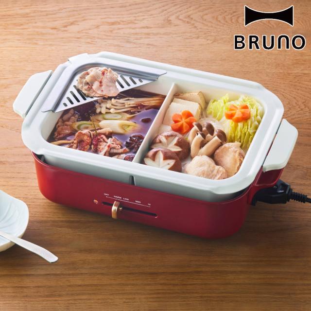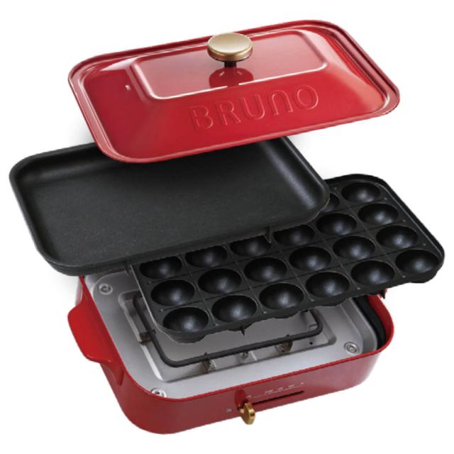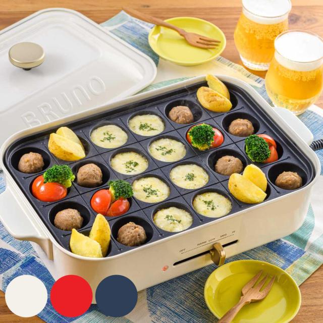 BRUNO コンパクトホットプレート たこ焼きプレート付き 蓋付き ( ブルーノ ホットプレート たこ焼きプレート 平面プレート 木べら付き おしゃれ コンパクト 2〜3人用 マグネット式 1人暮らし キッチン家電 調理家電 電気 )