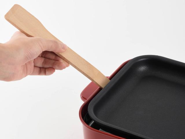 付属の木べらは調理に使うだけでなく、逆さにすれば簡単にプレートを外すことができます。