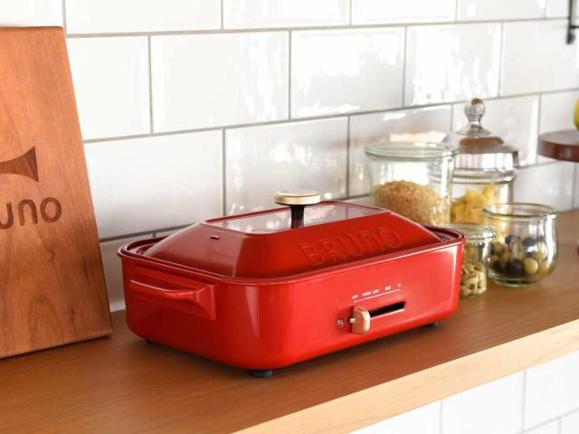 A4スペースにすっきり置ける、2〜3人用のちょうどいいサイズ感です。食卓を占領しないから、1人暮らしでも、家族の食事にも、毎日使える新しいホットプレートの形です。