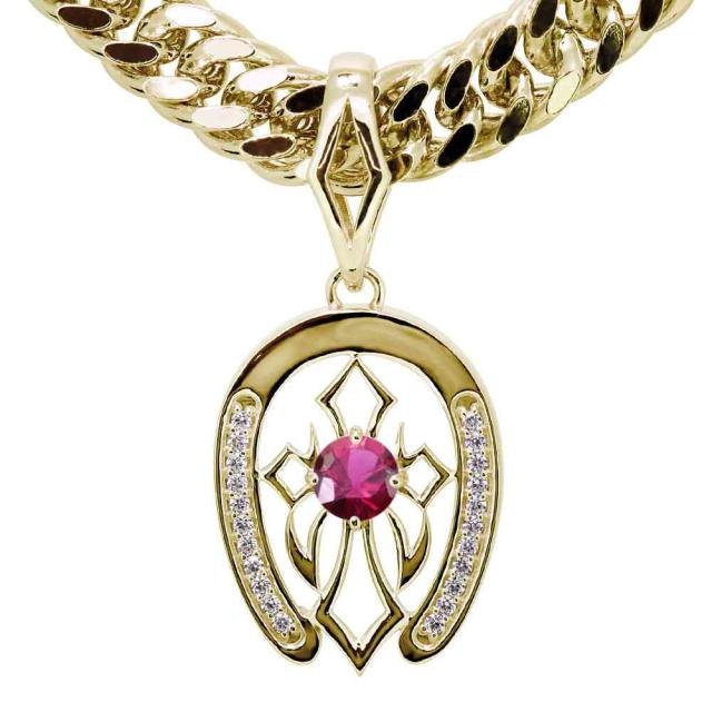 ネックレス メンズ ゴールド 18金 馬蹄 クロス ペンダント k18 ルビー 誕生石 7月 喜平 キヘイ 太め 男性