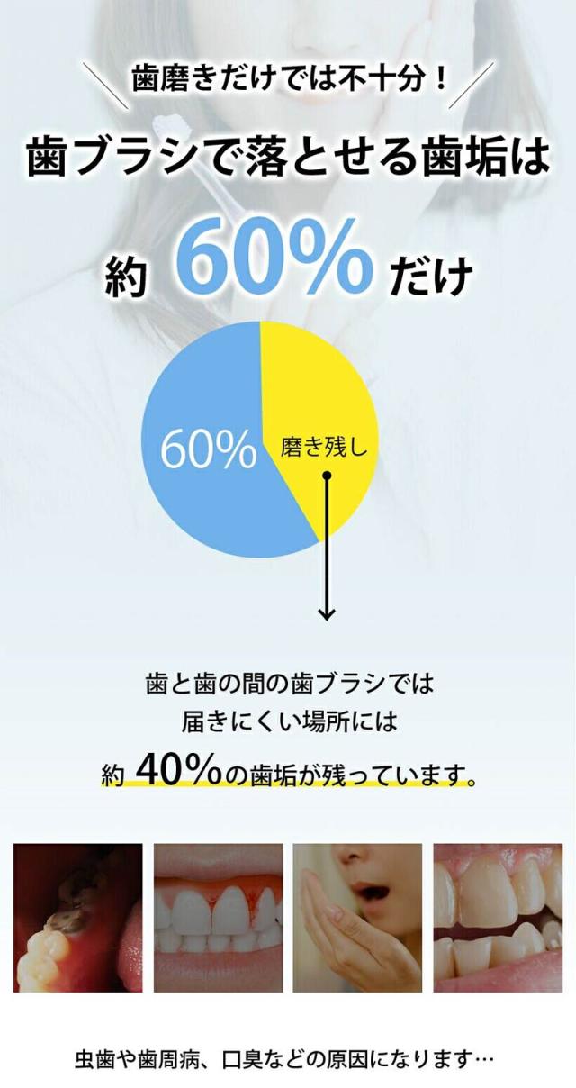 1分間に約1600回の高速振動により、歯ブラシだけでは届かない箇所の汚れも除去します。