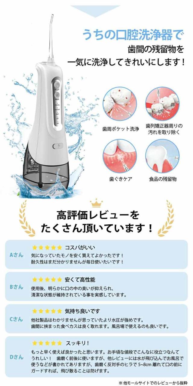 口腔洗浄器は、水を噴射して口の中を洗うという非常にシンプルな器具ですが、効果は抜群です。