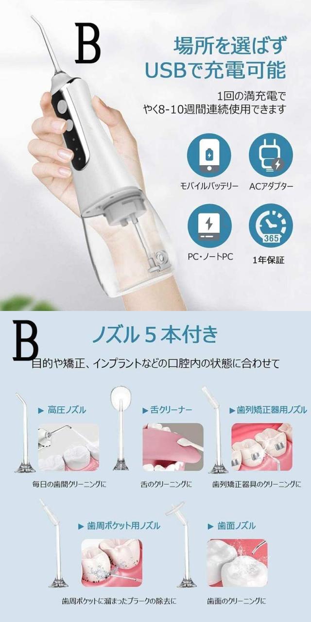 即納 ジェットウォッシャー 口内洗浄器携帯型充電式 口腔ケア 舌クリーナー 歯間ジェット洗浄 IPX7防水歯垢 フロス デンタル 虫歯 歯周病 口臭防止 歯垢zk1074