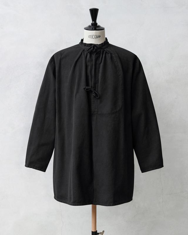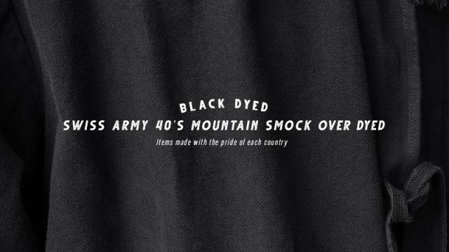 スイス軍で1940年代を中心に使用されていたマウンテンスモックが入荷しました!ブラックカラーにオーバーダイ(後染め)がされていますが、放出された後にヨーロッパ本国で製品染めが施され、数十年の時を経て当店へ入荷したアイテムです。ジャーマンクロスのような変則的な繻子織りのコットン素材が使用されており、わずかに微起毛した表面が肌触りと風合いの良い質感です。近年ではMAISON MARGIELAが、このスモックをサンプリングしたアイテムをメンズのコレクションラインで発表したことで、このアイテムの認知度がさらに高まりました。