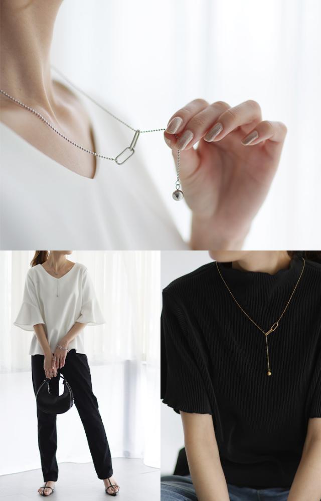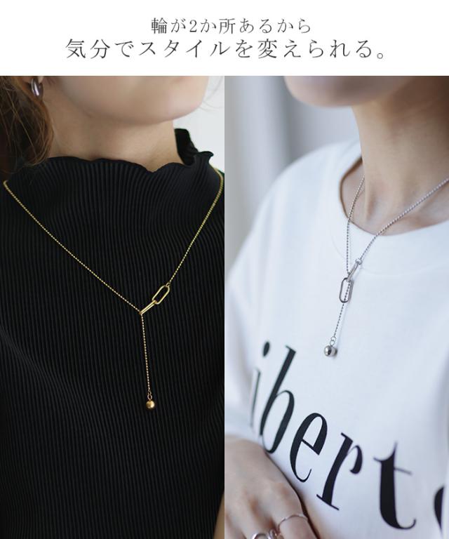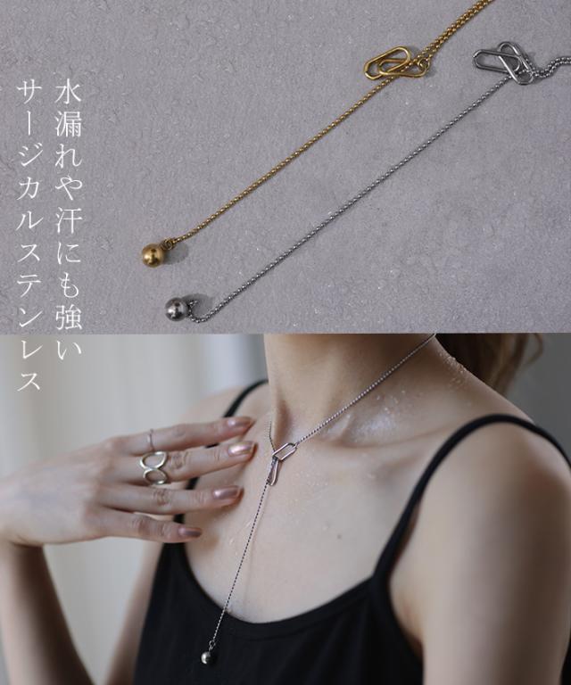 揺れるボールパーツが視線を惹きつけるサージカルステンレスネックレス。