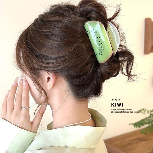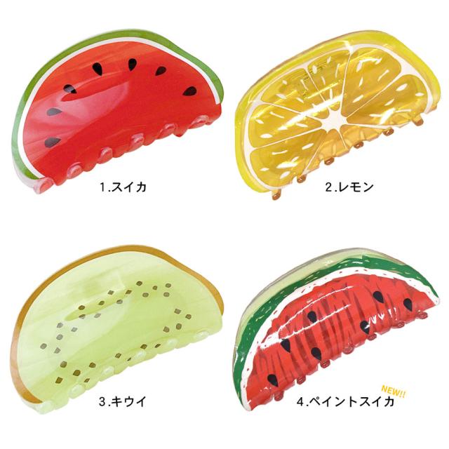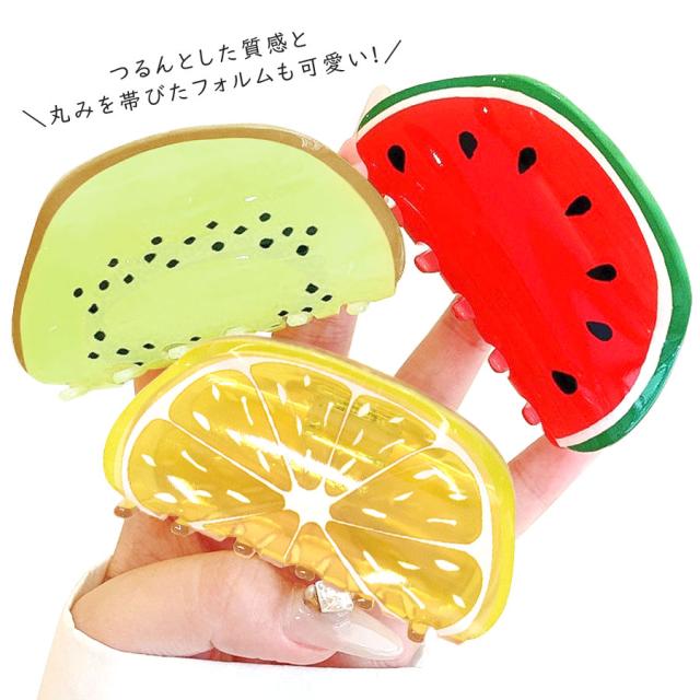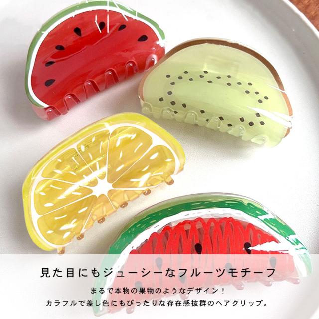 【ヘアクリップ フルーツ モチーフ バンスクリップ スイカ レモン キウイ くだもの 果物 レディース ヘアアクセサリー お洒落 ユニーク 派手 韓国風 カラフル アセテート アセチ アクリル 西瓜 小物 差し色】