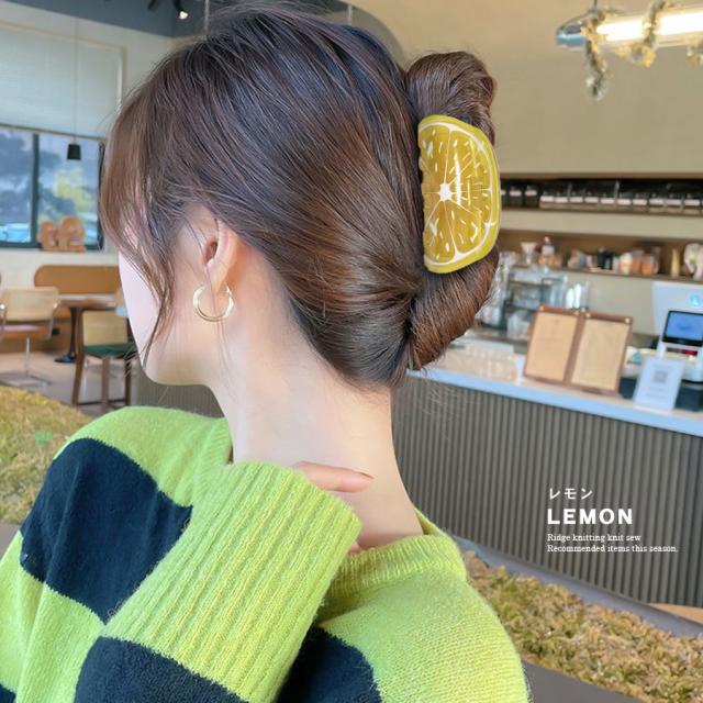 ヘアクリップ フルーツ モチーフ バンスクリップ ハーフアップ スイカ レモン キウイ くだもの 果物 レディース ヘアアクセサリー お洒落 ユニーク おもしろ 派手 韓国風 カラフル アセテート アセチ アクリル 送料無料 (hac278)