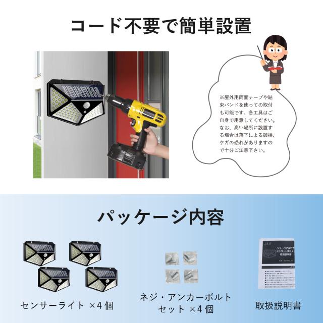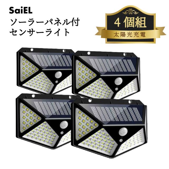 【公式ショップ】【4個セット】 SaiEL ソーラーライト 屋外 人感センサー 自動点灯 IP65 防水 防塵 LEDライト 明るい 玄関 庭 エントランス テラス ガレージ 玄関 バルコニー 駐車場 花壇 歩道 プールサイド キャンプ場