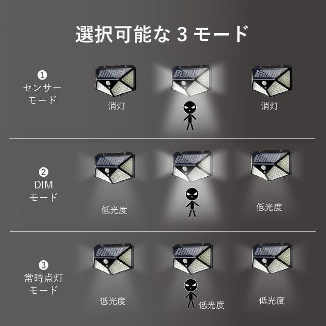 ★選択可能な3モード。センサーモード・DIMモード・常時点灯モード