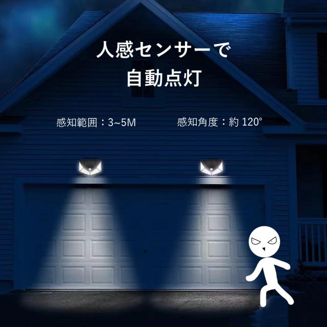 ★人感センサーで自動点灯します。センサー感知範囲:3~5M、感知角度:約120°