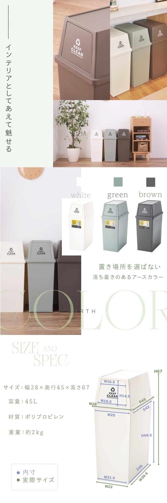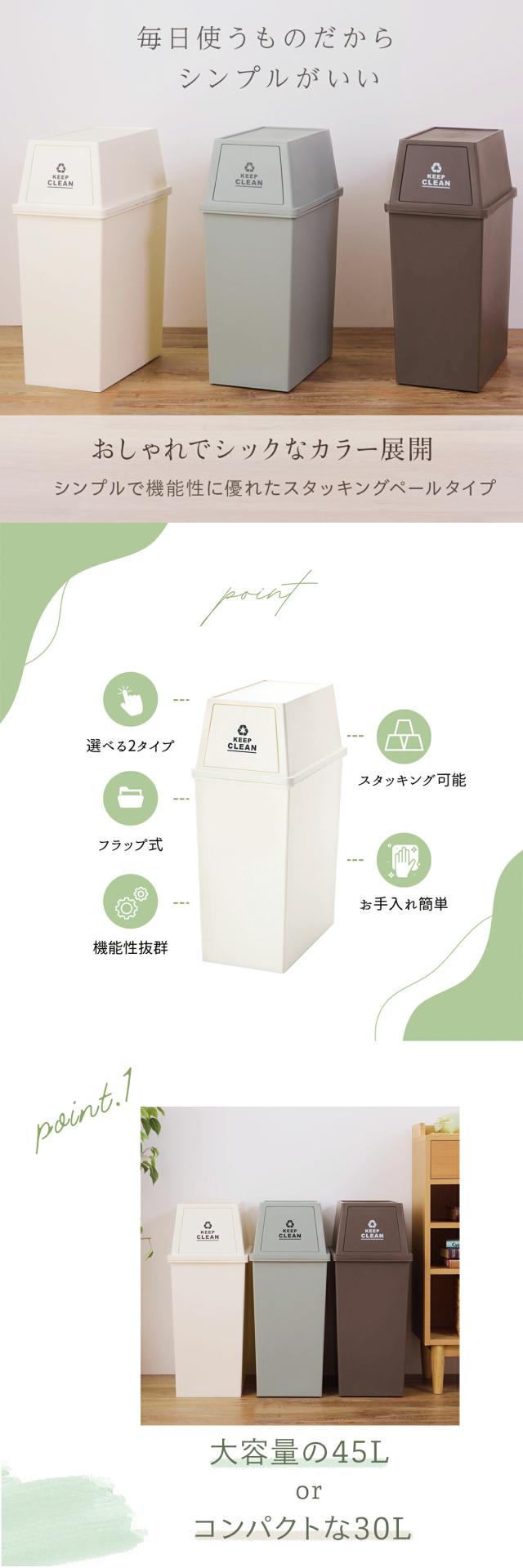 ゴミ箱 おしゃれ スリム スタッキングペール 45L ダストボックス 屋外 屋内 スタッキング キッチン フラップロック マット ふた付 蓋付き キャスター付き キッチン カウンター下 分別 省スペース おしゃれ シンプル アースカラー 重ねられる 積み重ね 日本製 LFS-761
