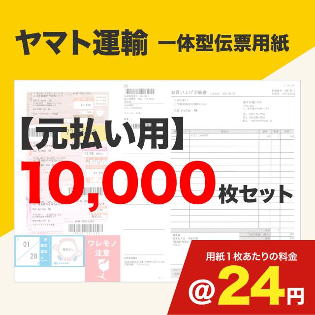 一体型伝票用紙(ヤマト運輸)元払い用 10,000枚セット (@24円)