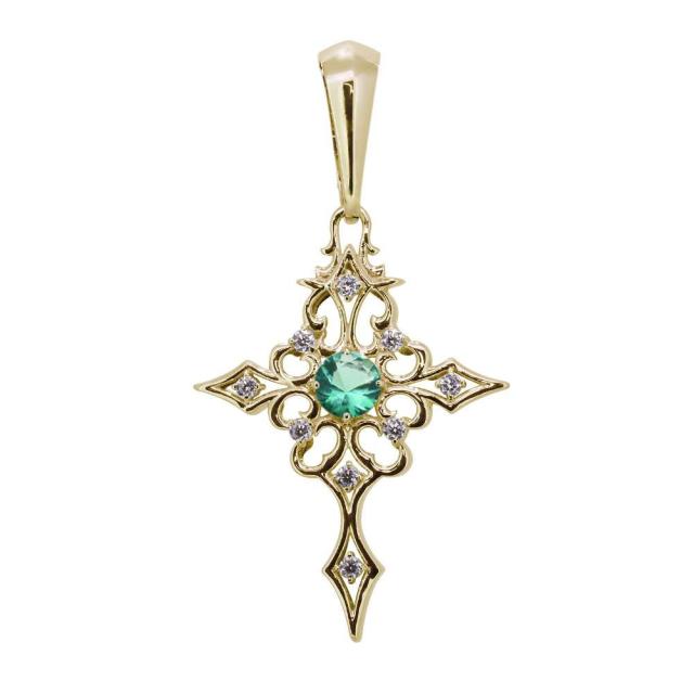 5月誕生石エメラルドを使用した18金製の、クロス(十字架)モチーフの、メンズペンダントヘッドです。