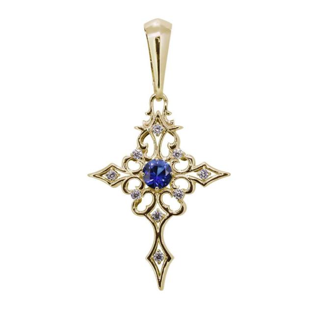 9月誕生石サファイアを使用した18金製の、クロス(十字架)モチーフの、メンズペンダントヘッドです。