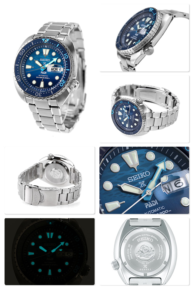 | 仕様 | 200m潜水用防水 平均日差+45秒〜−35秒 駆動期間:最大巻上時約41時間持続 裏ぶた「SPECIAL EDITION」表記 スクリューバック 逆回転防止ベゼル ねじロック式りゅうず ダブルロック中留 ルミブライト(針・インデックス・ベゼル) 耐磁あり 石数 24石 曜日二か国語切替機能 日本製 |