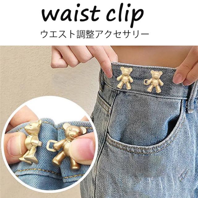 ウエスト調整ボタンフック くま かわいい お直し セルフウエスト調整 ボタン サイズ直し ウエスト 詰め 調整 クリップ ウエスト調整 バックル レディース キッズ 送料無料 SLENDER スレンダ ws015