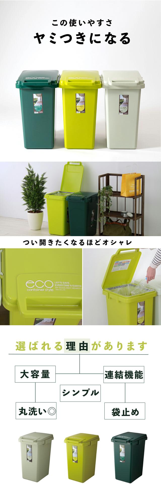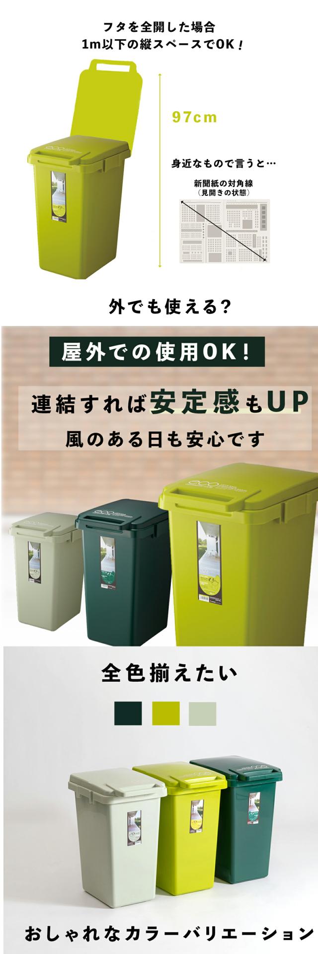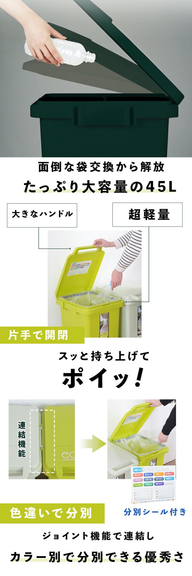 ゴミ箱 おしゃれ 45L コンテナスタイル ダストボックス ふた付 フタ付き おしゃれ シンプル 連結 分別 可燃ごみ ペットボトル リサイクル 使いやすい野外 室内 丸洗い ワンハンド ジョイント レジ袋 エコ リビング キッチン グリーン 新生活 一人暮らし CS3-45J