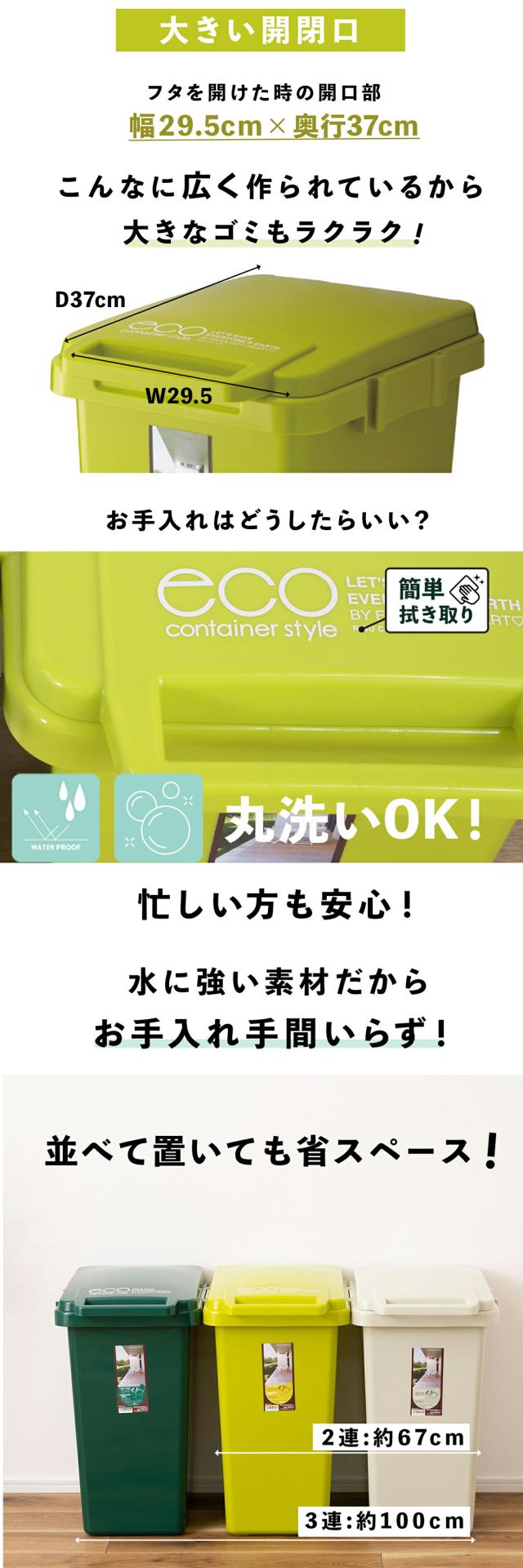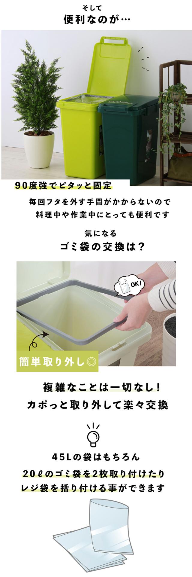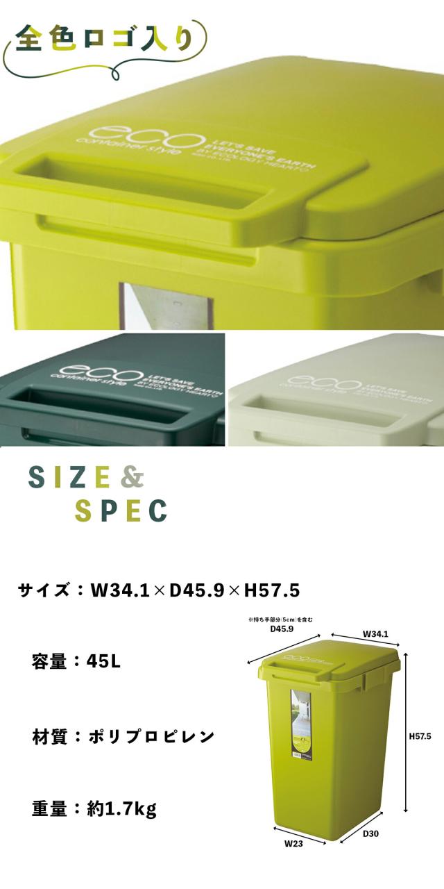 ゴミ箱 おしゃれ 45L コンテナスタイル ダストボックス ふた付 フタ付き おしゃれ シンプル 連結 分別 可燃ごみ ペットボトル リサイクル 使いやすい野外 室内 丸洗い ワンハンド ジョイント レジ袋 エコ リビング キッチン グリーン 新生活 一人暮らし CS3-45J